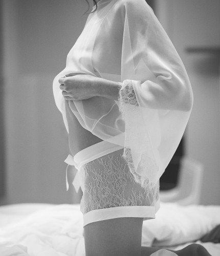 Au-delà de la robe, la créatrice propose une vision complète de la silhouette nuptiale. Elle imagine également des déshabillés sur mesure, pensés comme un prolongement naturel de la robe de mariée. Réalisée à partir des mêmes matières ou de détails choisis, cette lingerie unique accompagne les moments intimes avec la même délicatesse et le même soin. Installée au Mans, la maison Hélène Lajoinie incarne une approche rare et précieuse de la robe de mariée, où chaque création devient l’expression d’une féminité assumée et singulière.