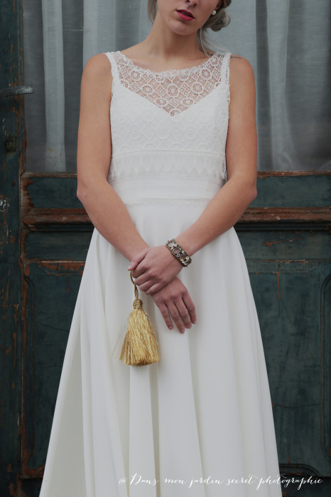 {crèpe prado et dentelle de Caudry}