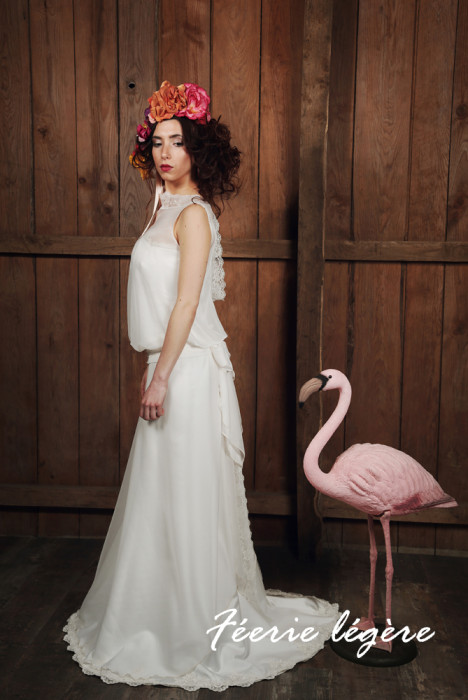 du corset Coquet, du corsage Galant, de la jupe Féerie, de la sur-jupe Légère et de la ceinture Chaloupette broche Coquette