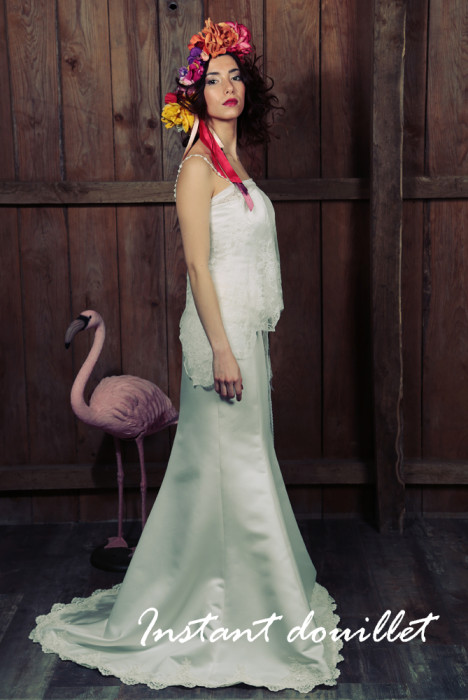 du corset Coquet, du corsage Douillet, de la jupe Féerie et de la ceinture Poupette broche Chiffonette